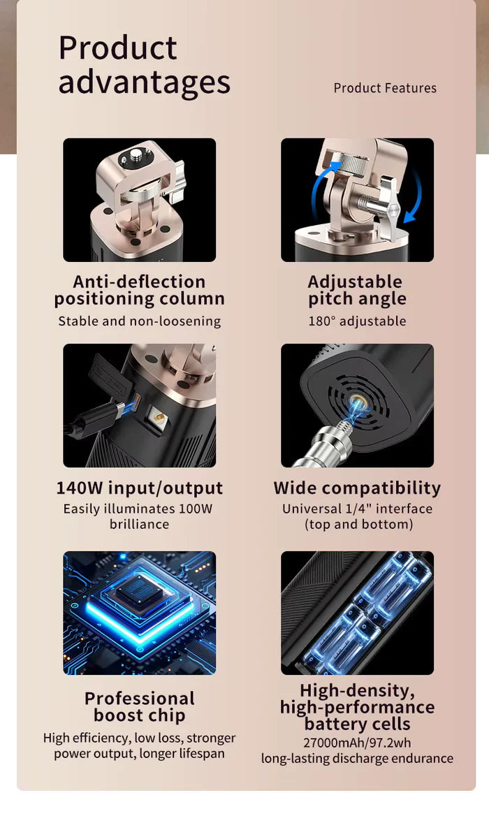 MAMEN 140W Battery Power Indicator Photography Fill Light Grip Handle