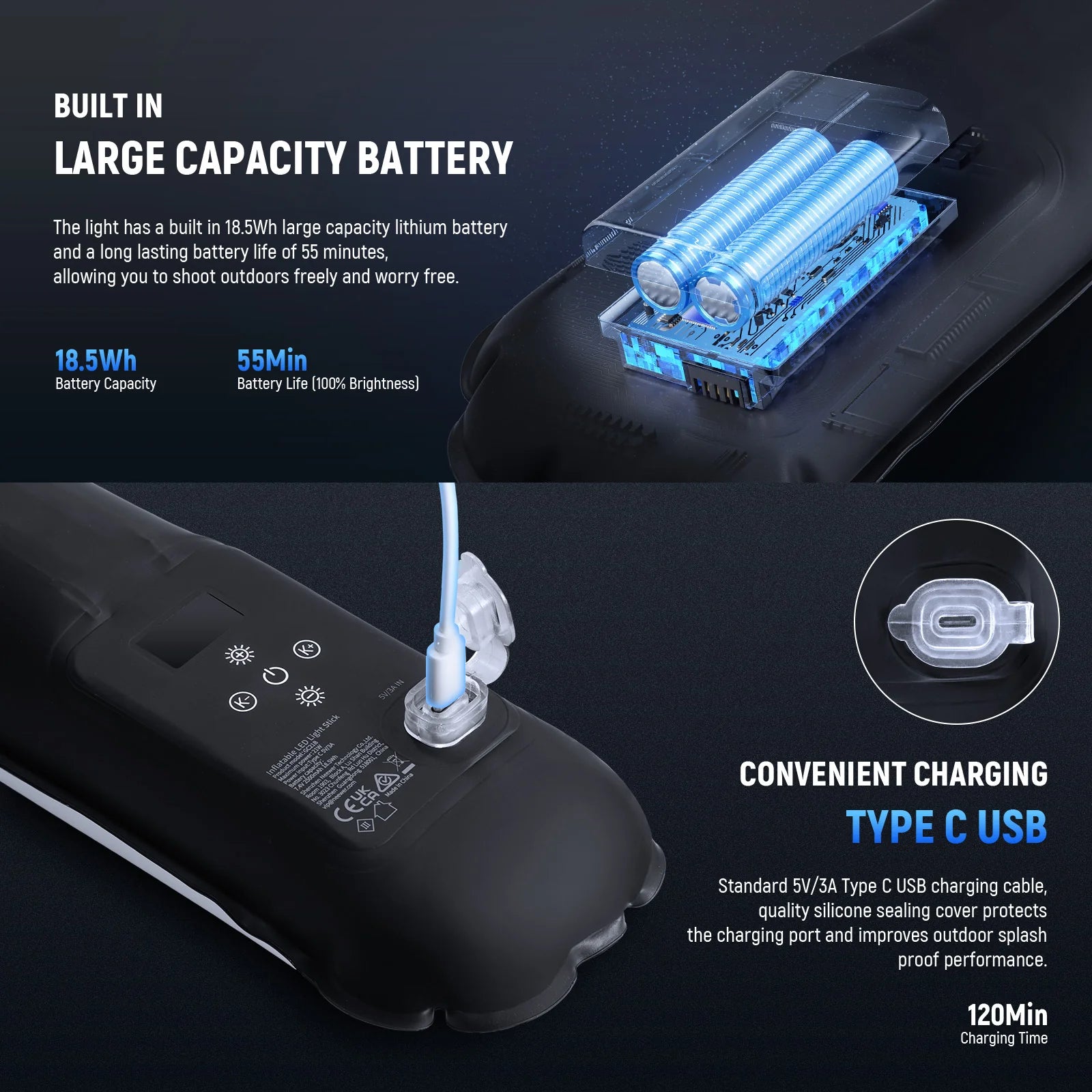 - High Capacity 2500mAh Battery & USB C Charging- The LED fill light has a built in 7.4V 2500mAh 18.5Wh battery that keeps the light running for up to 50 minutes at full brightness, serving as a reliable photography lighting gadget for you to capture beautiful moments and film dynamic vlogs. Effortlessly recharged to full within 120min using the included USB C cable with portable chargers (NOT included), enabling extended shooting sessions on the go