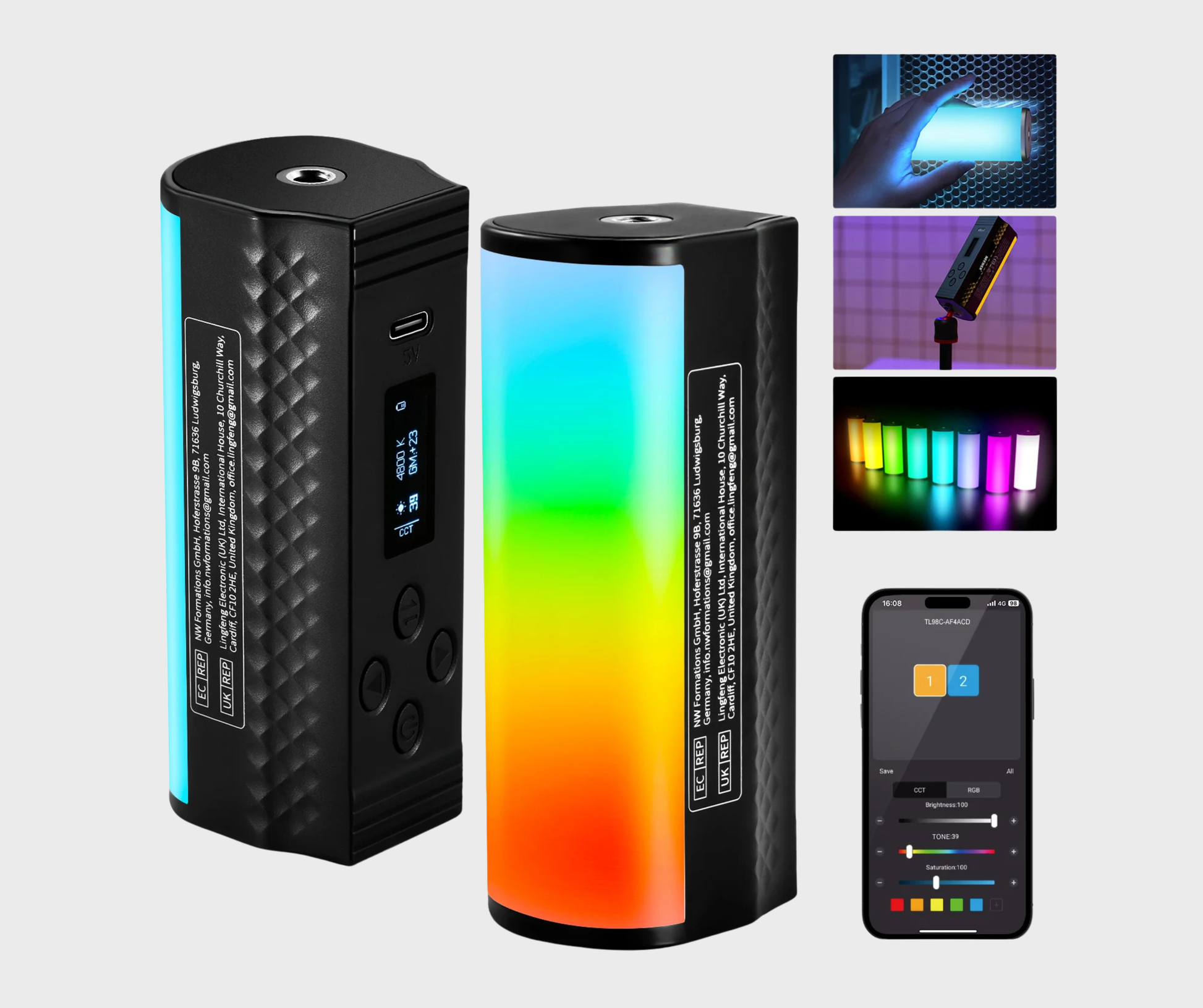 - Creative Lighting with CCT/HSI/FX Modes- This LED tube light stick features precise light adjustments for custom lighting scenes. Adjust color temperature from 2500K to 10000K in CCT mode and use the built in GM adjustment for color calibration. HSI mode fine tunes 360° tone, 0~100% brightness, and 0~100 saturation. 17 scene effects include cop car, lightning, fireworks, etc. The OLED display and physical buttons for intuitive handling. OTA firmware upgrade supported via the app